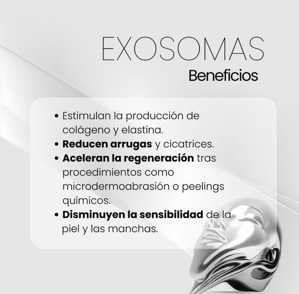 ✨ Los exosomas han revolucionado el mundo de la estética. Son el tratamiento más novedoso y exclusivo para rejuvenecer la piel desde dentro, estimulando la regeneración celular y mejorando textura, luminosidad y firmeza.